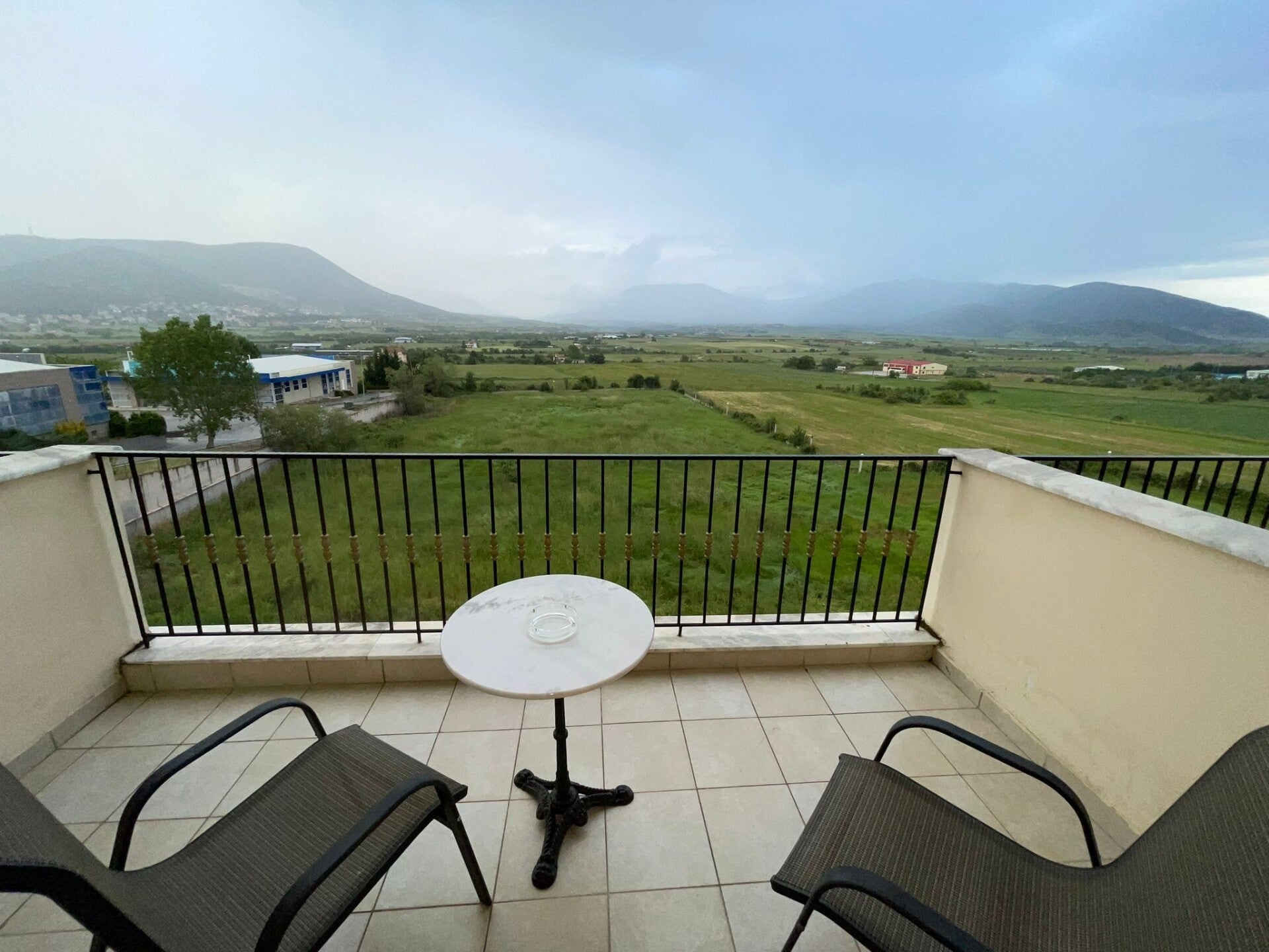 Für die geplanten zwei Nächte in Drama haben wir uns im Hotel Kouros eingemietet. Die Betten waren bissle hart für meinen Geschmack, aber die Aussicht war fantastisch! Inklusive Rehe!