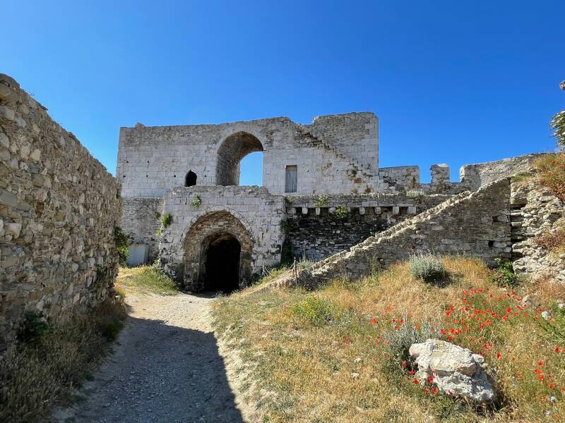Im verschlafenen Dörfle Methoni, wo außer einigen offensichtlich berenteten Touristen (gehören wir da wirklich schon dazu?) absolut nix los ist, findet sich eine enorme Burganlage mit maximal romantischem Flair! Ich hätte in Griechenland nicht mit solchen gut erhaltenen mittelalterlichen Burgen gerechnet. Das bereichert die vorchristlichen Ausgrabungen und macht unsere Reise abwechslungsreich.