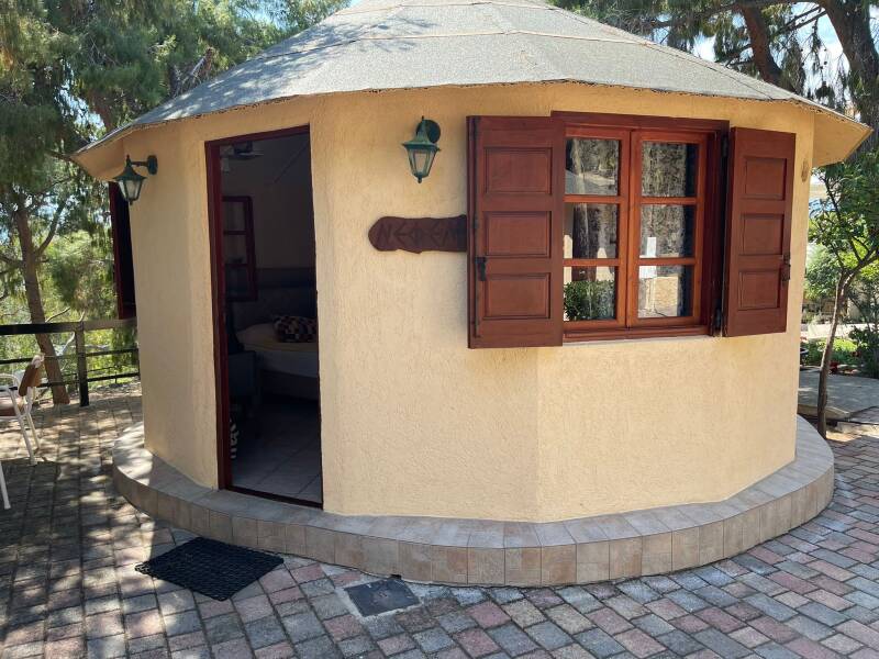 Wir haben einen herrlichen Nachmittag am Pool verbracht und abends vor unserer Hütte gevespert - das war toll! Morgen früh ist aber endgültig Delphi dran!